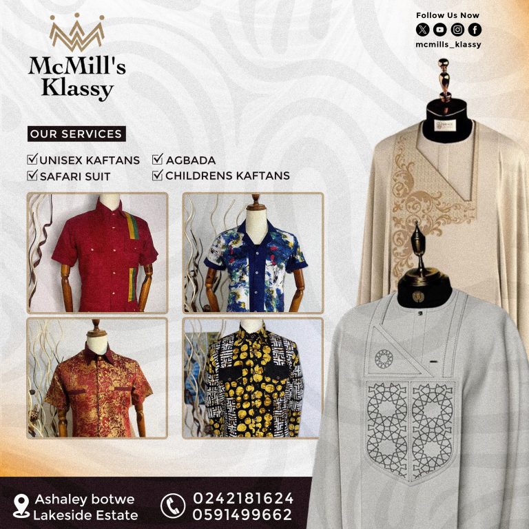 At McMill’s Klassy, we believe fashion is more than just clothing, it’s a statement of style, personality, and confidence. Conveniently located in Ashaley Botwe Lakeside Estate, we specialize in crafting timeless and elegant African and contemporary outfits to suit your every occasion.
