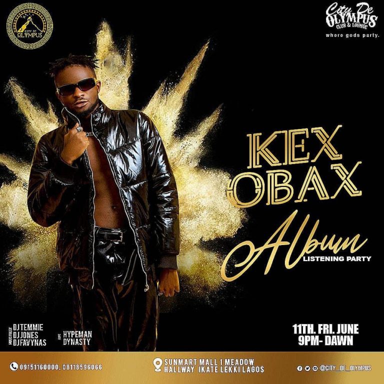 Afrobeat Music Artist Kex Obax is set to shutdown the city of Lagos with his EP listening party which will be held at The City Olympus Club and Lounge sunmart mall 1 meadow Hallway, Ikate Lekki.